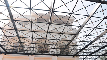 A space frame is a structure system assembled of linear elements so arranged that forces